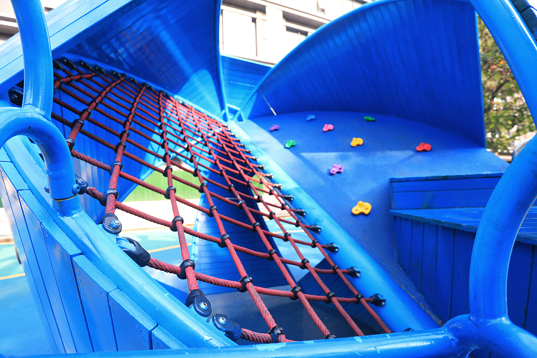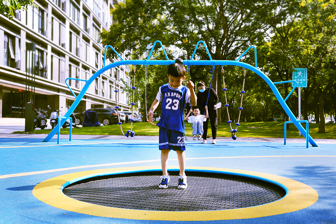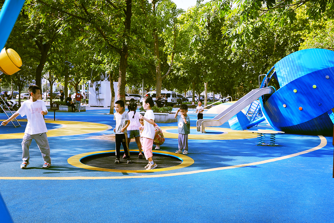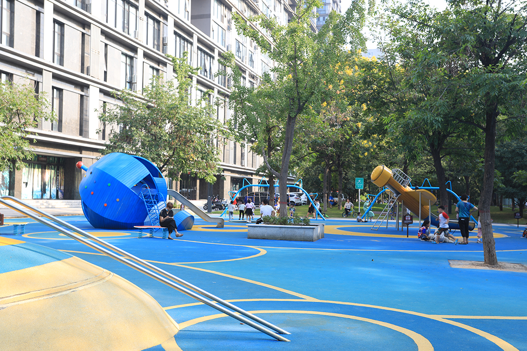 项目位于河南郑州市郑东新区中州大道东侧50米生态廊道,北至金水河、南至陇海铁路。整体设计以未来儿童的真实需求为设计出发点,打造出了一个充满童趣的儿童游乐空间,为周边居民提供了一个遛娃好去处。细节上,选用了多个造型新颖的童趣游乐设施,以激发儿童的想象力及游玩兴趣。同时,游乐设备的功能丰富,涵盖了攀、爬、跑、跳、钻、滑、荡这七大类别,提供了较高的可玩耍性。