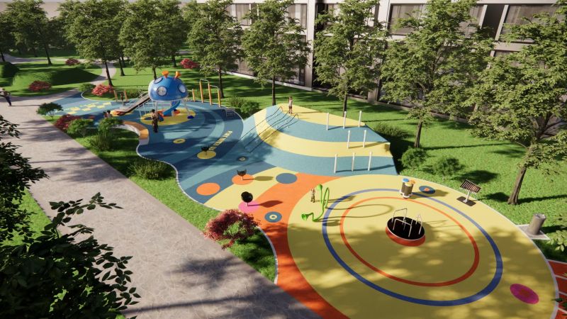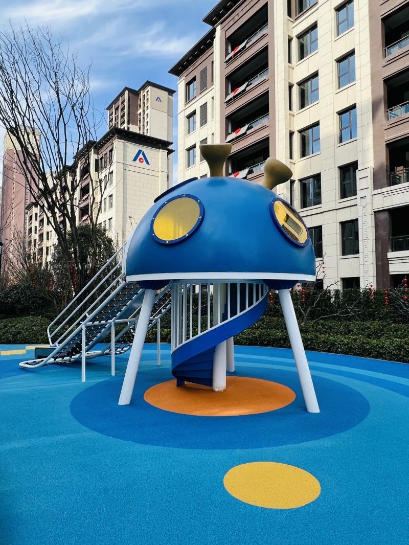 本次项目以“星际飞船”的游乐空间为设计概念,以造型新颖设计为亮点,激起小朋友玩乐之心;穿过活力地带,向着飞船前进,设计帮助孩子打造智慧成长与极具梦幻的主题沉浸式互动游乐空间。游乐场地设计以儿童为本,结合儿童爱冒险的天性,在平坦的活动空间基础上,搭建局部微地形,为亲子提供攀爬、趴卧、跑跳等活动。