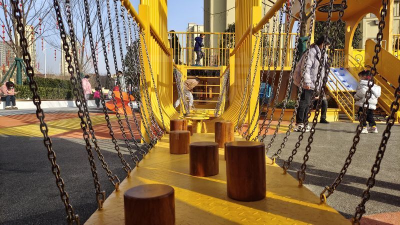 到达松鼠城堡需要一番冒险,小心穿过勇气之桥,到达松鼠城堡。四川爬网、踩盘、荡桥、眺望平台……一个个承载着特定的游戏和功能的平台,鼓励儿童在嬉戏和休息之中产生社交互动,玩乐中收获纯真勇敢协作与友情。