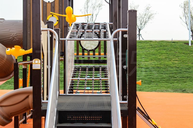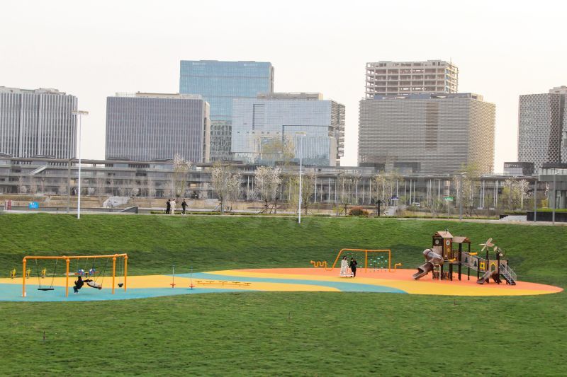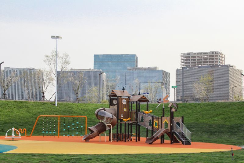 满眼绿意感受到春天气息,石径通向乐园快乐之地,树屋滑梯与游乐设备散落在绿地中央,充满自然元素树屋滑梯玩乐多样,多种滑梯与四川爬网组合,让儿童感受攀爬和滑落的乐趣。绳网让玩乐多一份挑战与探索,益智小件让可爱脑袋活力运转。 乐园里散布多种游乐设备。环形四川秋千针对不同年龄段人员设置不同类型座椅,兼顾安全与乐趣。荡漾的秋千荡起儿时美好回忆,与孩子一起感受童年快乐。喂~声音在管道里奇妙传送,春日里秘密在悄悄传递。顺着绳网向上攀爬,拓展运动一番,活力蓄能。摇摇车摇呀摇,好不惬意,抬眼环绕的绿意草地,好似骑乘欢快小马在草原奔跑。蜻蜓驻足、星辰散落,四川跷跷板起落之间,与自然亲密接触。转盘转动,体验旋转奇妙感觉紧握转杆,旋转不止,世界紧随你我转动。一步一花,平衡感在步步提升,花开朵朵通向美好远方。乐园一旁超大白色梦幻沙池,触感细腻,激发儿童创造力,释放活力。 休闲座椅休憩一番,看着玩闹孩子们,感受希望与活力。匆忙的大人们也会停下脚步,来乐园里重拾起童真的快乐。宽阔场地肆意玩乐,春光无限,玩乐无限。春意款款,岁月缓缓,留下匆匆脚步来绿意乐园感受春日快乐吧。