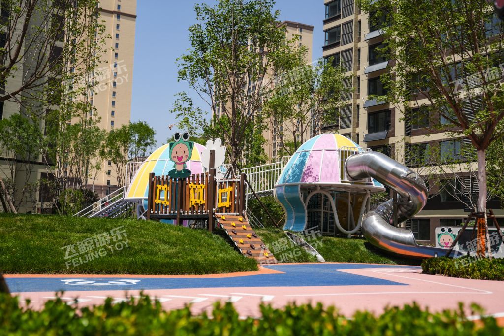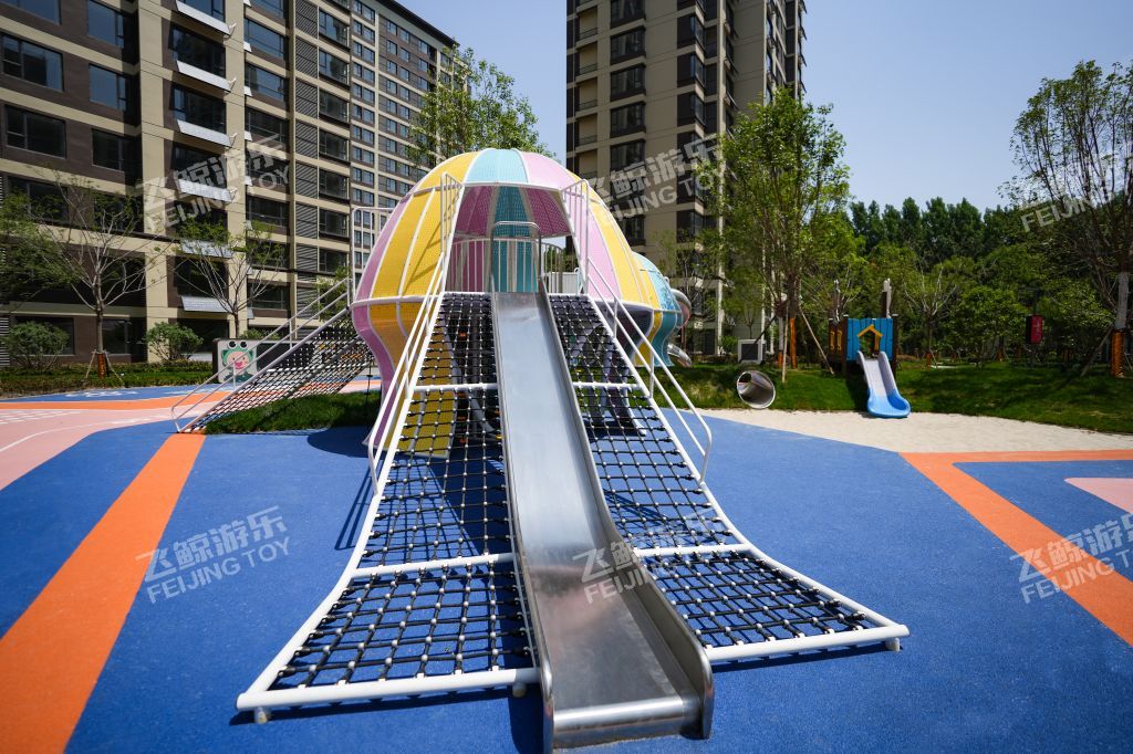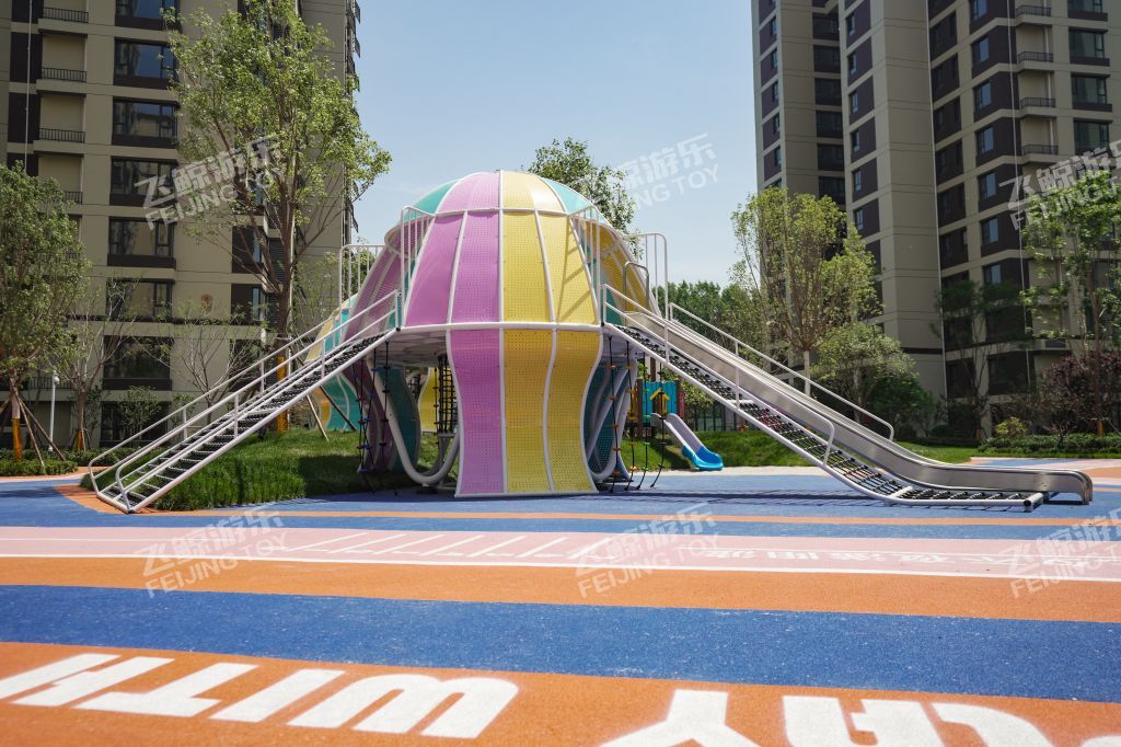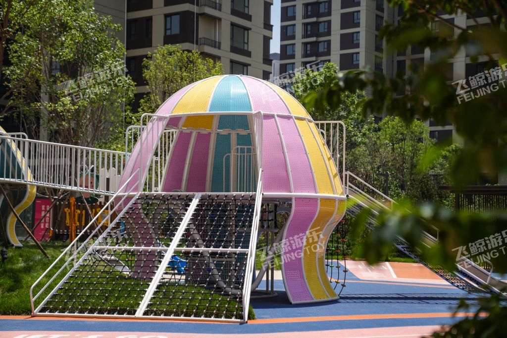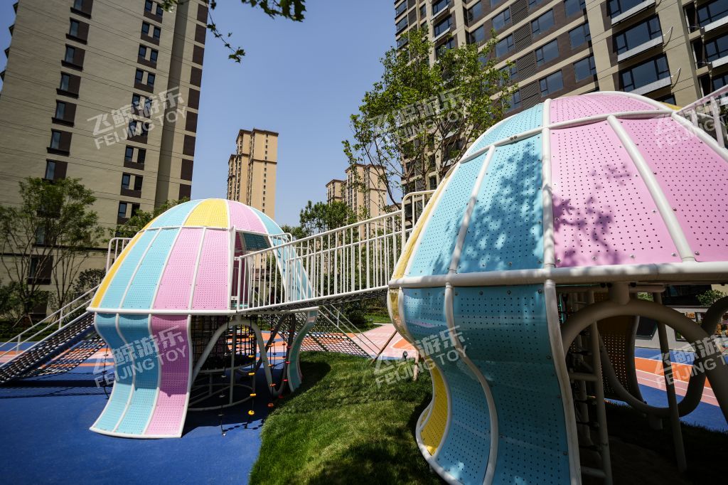 精灵向导在乐园处等候着,攀登一番,走过栈道,通过窄窄的滑道,来到精灵水母的身边,与多彩水母好好互动玩乐一番。连廊触手将两只精灵水母紧紧相依偎在一起。色彩缤纷、灵动有趣的造型,为儿童创造美好童年记忆。无论哪个方向,精灵水母都对你敞开怀抱,小勇士们爬过四川爬网进入精灵水母温柔内部探索治愈一番。在隐藏的角落里,是精灵水母核心区,生产力量和快乐,在不同的设备玩乐之间,释放活力,增强小勇士的力量。曲线旋转滑梯,顺着滑梯通道,与快乐一起释放出来。结合场地地形放置钻洞设施,为儿童提供可探索可隐蔽的玩耍空间,藏在自然里的钻洞,拥有返璞归真的乐趣。 小精灵们守护在乐园里,找到他们身影,与精灵们快乐玩耍。摇摇车、四川跷跷板在摇摆之间,收获同伴互动快乐。转盘转动,快乐也环绕在四周中。益智互动景墙,能很好锻炼儿童创造能力,翻动益智块,解密密语,方块之间,创意无界。 融入精灵元素的水母乐园,为孩子们打造一个充满童趣、神秘、活力的儿童空间。飞鲸游乐致力于为儿童创造更多快乐,飞鲸人将继续加强儿童需求发掘认知,深化游乐空间规划研究,打造更多