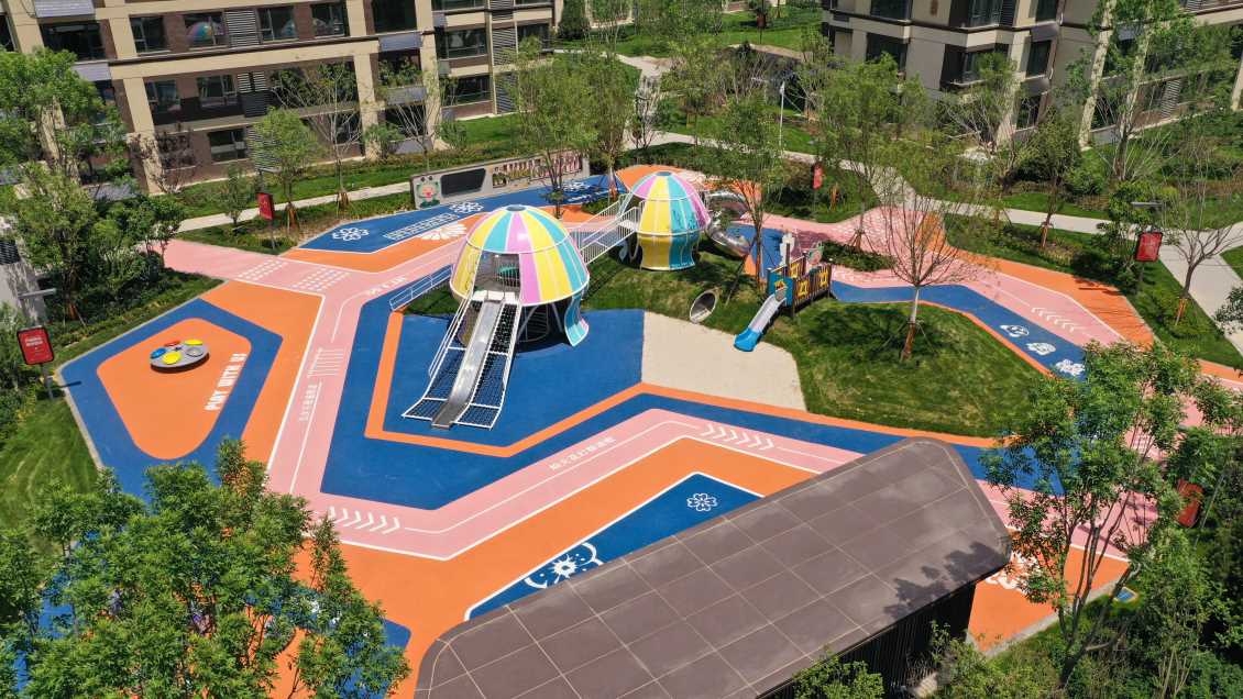 夏日来临,是否炎热天气让玩乐脚步停下,飞鲸游乐为孩子们打造精灵水母乐园,与精灵水母一起,畅游活力空间,打破炎热,活力无限。乐园采用多色彩搭配,橙、黄、粉为乐园注入一份活力,蓝色为夏日注入一份酷爽的感官想象。水母精灵施法,乐园朵朵花开,休憩之余逐花互动。地绘小游戏也会收获简单快乐,“跳房子”游戏重温与好友玩耍的快乐时光。