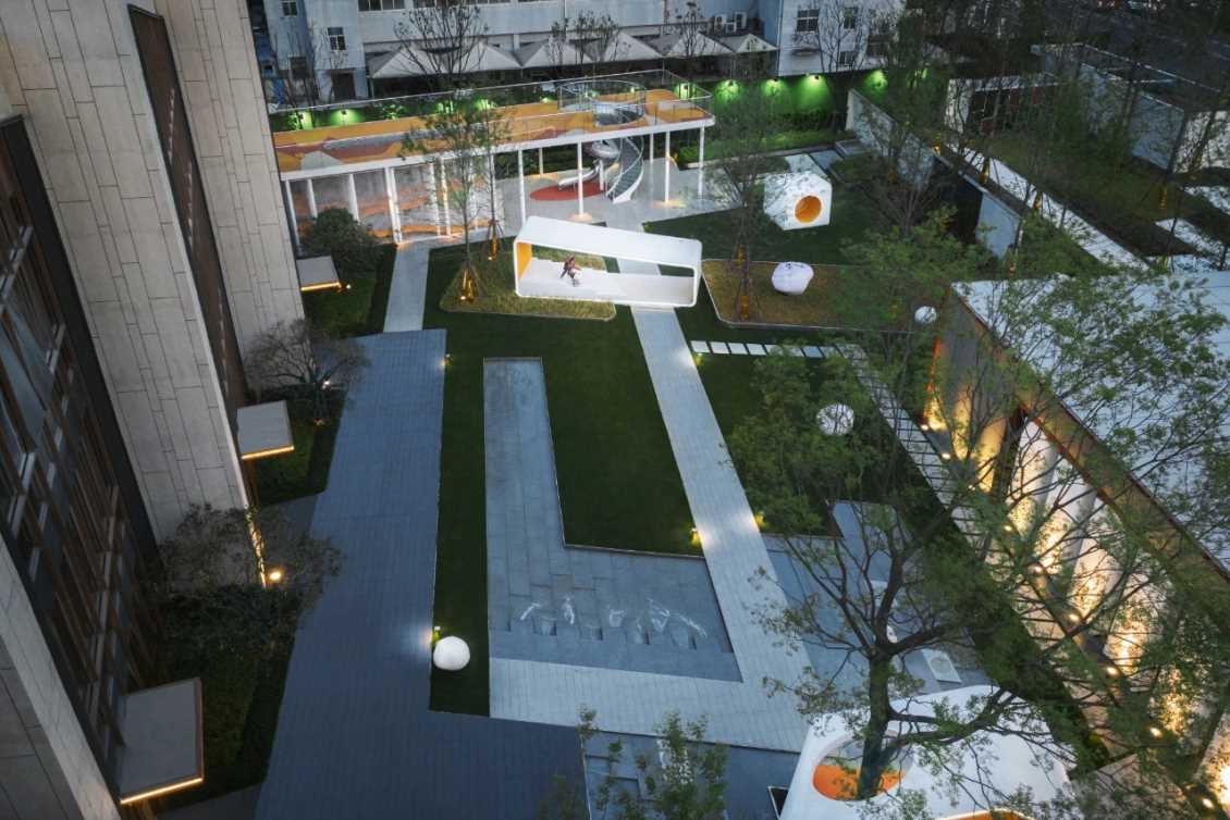 穿过绿意鲜氧的草坪空间,是一处欢快的绿洲四川儿童乐园。大小不一的森林盒子、功能的多样、几何的拼贴、趣味的廊架、层叠的绿意。奔跑、攀爬、躲藏、学习,处处皆有惊喜,处处皆是乐趣。构筑本身不会限定他们的行为,而是在时时刻刻释放他们的天性,激发孩子们的好奇心和无尽的想象力。
